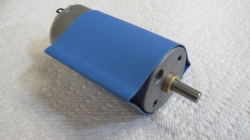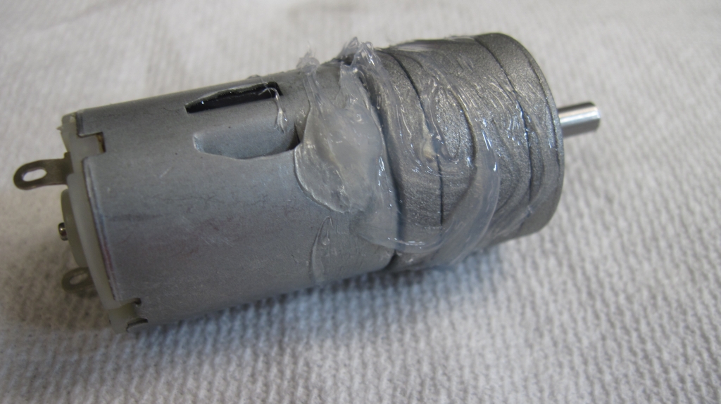 Next slide a length of heatshrink tubing over the gearbox and the front half of the motor and shrink it down so that its a tight fit. The heatshrink and